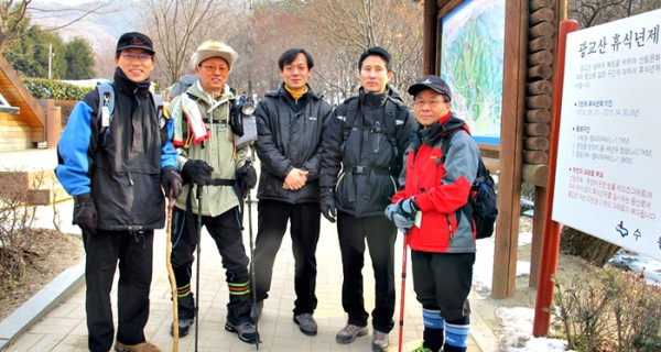 ▲'국사의 길을 걷는 사람들'은 지난 2월 17일 5명이 참석 첫 모임을 가졌다 ⓒ 김홍범 광교산이 배출한 두 국사가 기거했던 장소를 이어주는 '국사의 길'을 지난 24일(일) '국사의 길을 걷는 사람들'과 함께 걸었다. 국사의 길은 창성사지-종루봉(비로봉)-김준용장군비-지네절터-양지재-서봉사지-백년약수터-문암골로, 진각국사와 현오국사의 깨달음과 가르침을 느껴보는 소중한 길이다.
