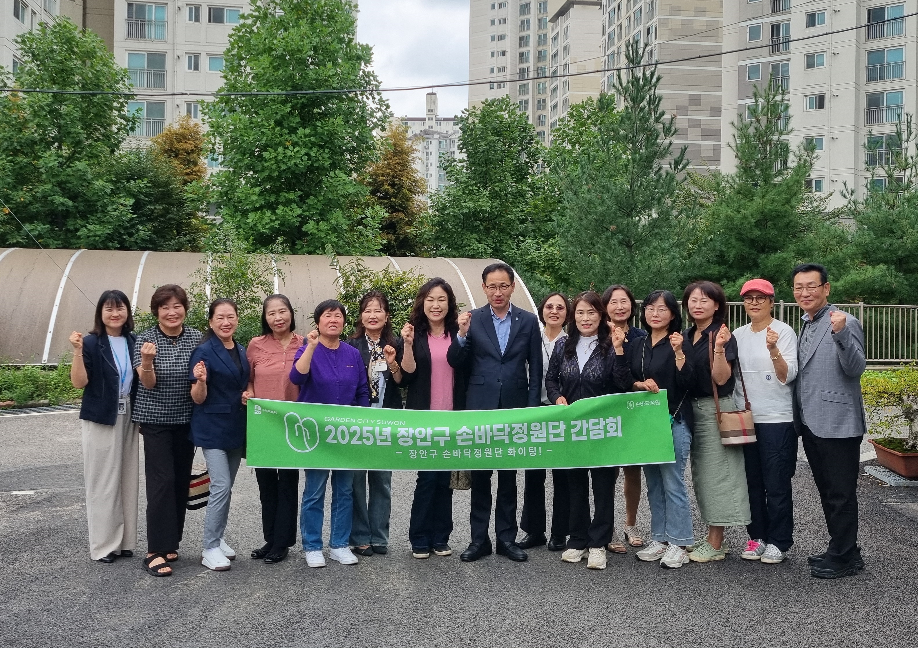 수원시 장안구는 지난 29일, 2025년 하반기를 맞아 손바닥정원단 장안구 위원(리더그룹)과 간담회를 개최했다. 이번 간담회는 손바닥정원단 장안구분과위원장 등 12명의 시민들과 장안구청장을 비롯한 시 관계자 6명 등 총 18명이 참석한 가운데 진행되었으며, 손바닥정원단 소개와 인사를 시작으로 향후 활동 방향에 대한 다양한 의견을 교환했다.