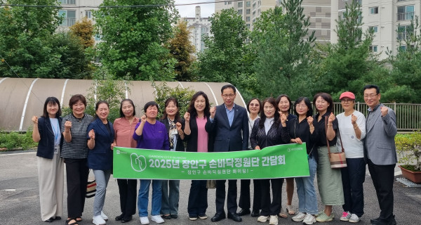 수원시 장안구는 지난 29일, 2025년 하반기를 맞아 손바닥정원단 장안구 위원(리더그룹)과 간담회를 개최했다. 이번 간담회는 손바닥정원단 장안구분과위원장 등 12명의 시민들과 장안구청장을 비롯한 시 관계자 6명 등 총 18명이 참석한 가운데 진행되었으며, 손바닥정원단 소개와 인사를 시작으로 향후 활동 방향에 대한 다양한 의견을 교환했다.