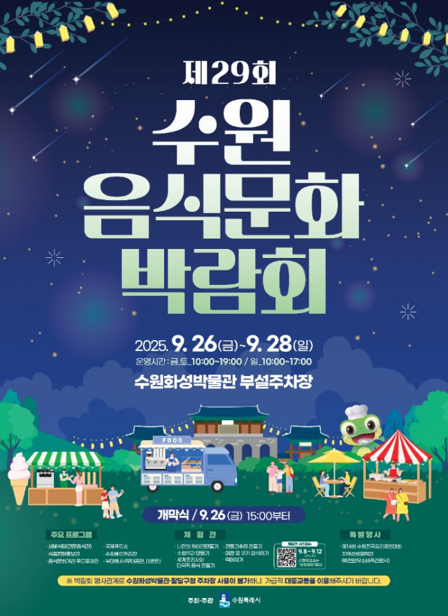 제29회 수원음식문화박람회가 9월 26~28일 수원화성박물관 부설주차장에서 열린다.