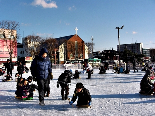 연일 영하10도를 넘나드는 쌀쌀한 기온을 보이는 지난 22일, 예년보다 추위가 빨리 시작되었던 관계로 당초 계획보다 이른 시기에 행궁광장 옆에는 82㎡ 크기의 얼음썰매장이 개장됐다. 예전 같았으면 1월 초에나 얼음썰매장이 개장 했겠지만, 올해는 그만큼 추위가 잦고 빨리 찾아온 듯하다.